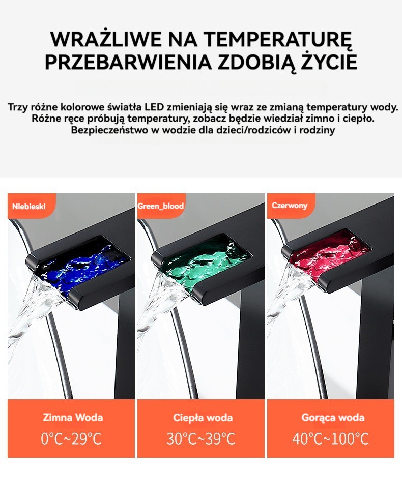 Zmieniające kolor krany rozpoznające temperaturę